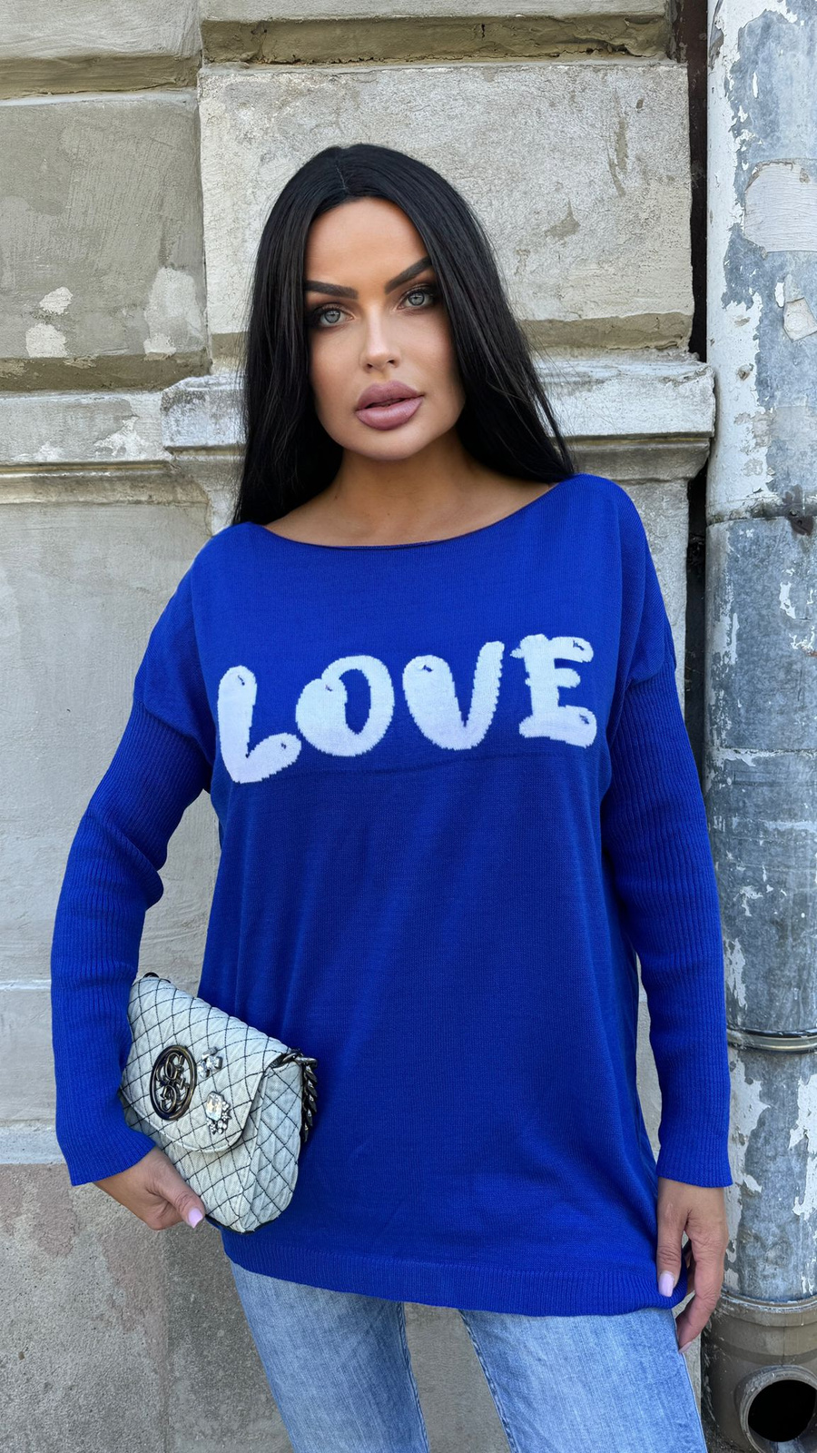 - This vibrant sweater with a "LOVE" print is the perfect choice for those who like to express their personality through fashion. The soft fabric and relaxed fit provide comfort and style for everyday wear.