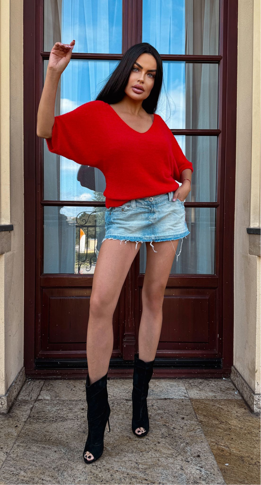 • A stylish sweater made from alpaca-like material, perfect for cooler days. Soft and pleasant to the touch, it provides all-day comfort. The shorter sleeves and loose fit make it a versatile wardrobe piece that goes with everything.
