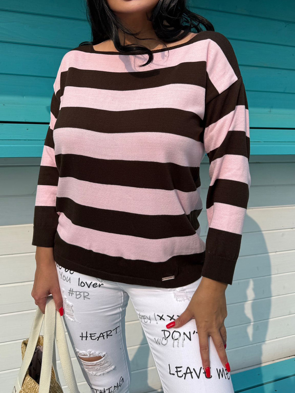 - Sweter damski w paski w łódkę