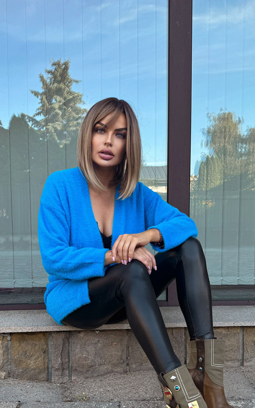 - Fashionable elegant cardigan, made of yarn on the pattern of alpaca fur. Thanks to the loose cut it lies perfectly on any figure.