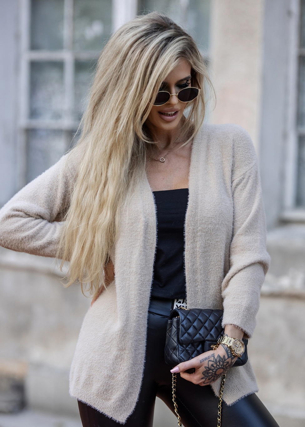 - Fashionable elegant cardigan, made of yarn on the pattern of alpaca fur. Thanks to the loose cut it lies perfectly on any figure.
