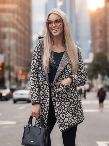 KARDIGAN DAMSKI LEO 72423-BRĄZOWY