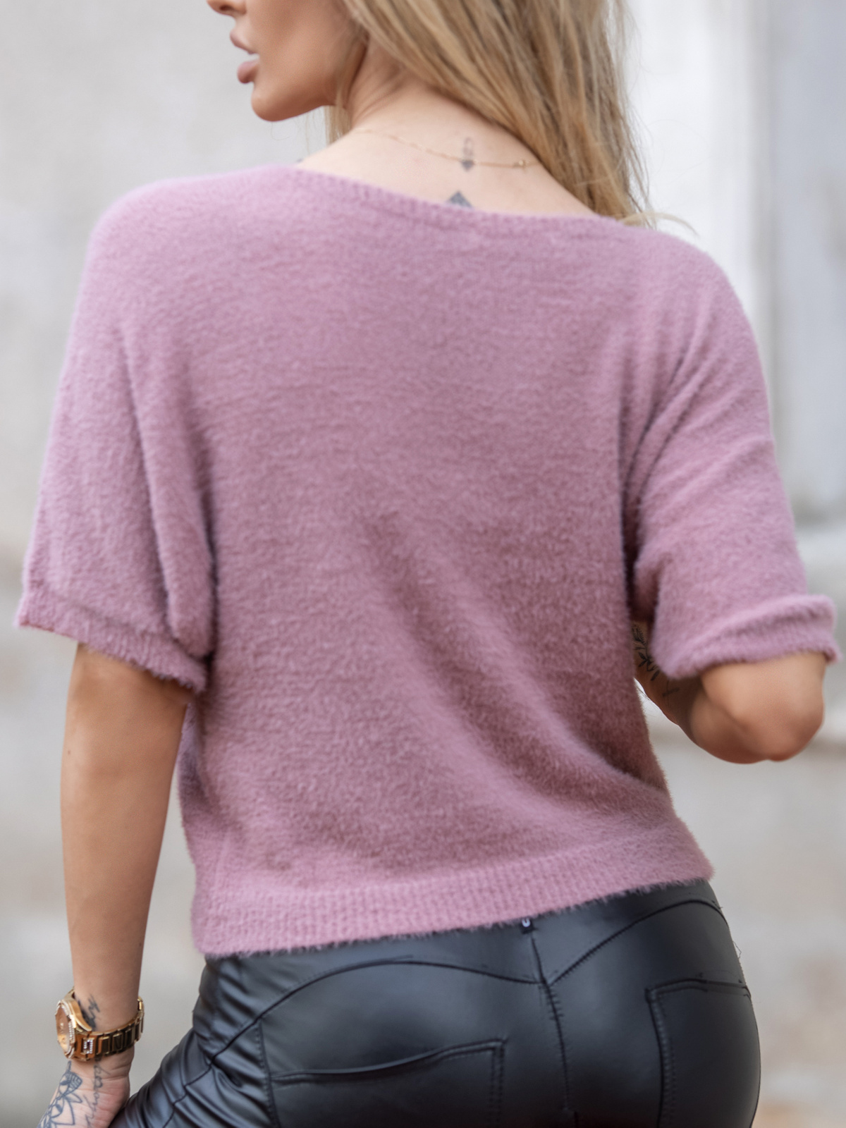 • Stylowy sweter z materiału jak alpaka , idealny na chłodniejsze dni. Miękki i przyjemny w dotyku, zapewnia komfort noszenia przez cały dzień. Krótszy rękaw i luźny krój sprawiają, że jest to uniwersalny element garderoby, który pasuje do wszystkiego.