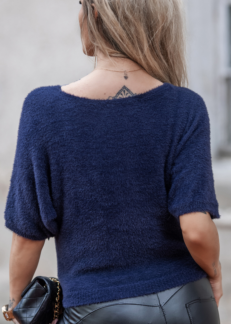 - Stylowy sweter z miękkiego materiału przypominającego alpaka, doskonały na chłodniejsze dni. Krótki rękaw i wygodny, luźny krój sprawiają, że sweter jest zarówno elegancki, jak i komfortowy.